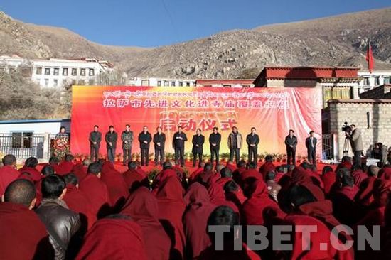 12月16日,拉萨市先进文化进寺庙覆盖工程启动仪式在哲蚌寺举行。