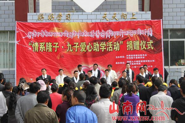 图为考察团在隆子镇新巴完小举行的爱心捐助现场。