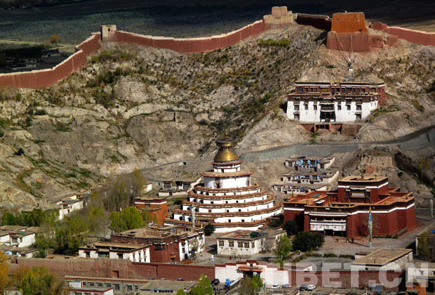 白居寺位于江孜县西北的宗山脚下,由措钦大殿、十万佛塔、扎仓和围墙四大建筑单元组成。白居寺的特色是一寺容三派。白居寺原属于萨迦派,噶举派和格鲁派的势力继而进入,各派一度互相排斥。最后,三派互谅互让,白居寺便兼容萨迦、噶举、格鲁三个教派。寺内供奉及建筑风格兼收并蓄、博采众长。
